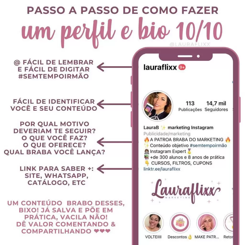 Vamos lembrar que uma bio bem construída aumenta a relevância do seu perfil e pode trazer resultados positivos. Não só o perfil, como a marca também é vista como interessante.