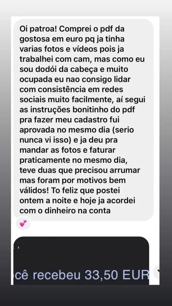 Você pode, hoje mesmo, vender fotos para europeus sem precisar mostrar o rosto e nem ter fãs ou seguidores nas redes sociais. Independente do seu tipo de corpo, cabelo ou manequim, sendo maior de idade, você pode receber em euros até pelas fotos que já estão no seu Instagram (!!!).
