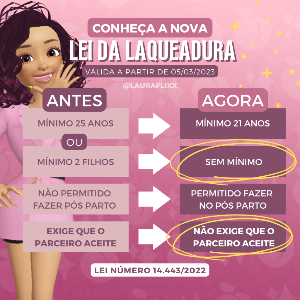 Fazer laqueadura no pós parto também era negado. Com a mudança da lei, é permitido agora fazer no pós parto.